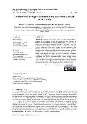 Students’ well-being development in the classroom: a mixed-method study.