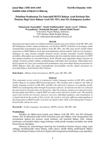 Kegiatan penerapan ipteks ini adalah pelatihan kepada guru-guru bahasa Arab MI, MTs, dan MA Kabupaten Jember dalam pembuatan soal berbasis HOTS. Pelatihan ini bertujuan untuk meningkatkan keterampilan guru bahasa Arab MI, MTs, dan MA yang masih rendah dalam menyusun tes HOTS Bahasa Arab dan memasukkannya dalam melalui software hot paotatoes. Sehingga tes yang disusun menjadi menarik karena bersifat interaktif. Setelah diadakan pelatihan, diharapkan guru memiliki pengetahuan dan keterampilan dalam menyusun tes HOT dan mampu membuat tes interaktif bahasa Arab. Metode yang digunakan dalam kegiatan ini adalah ceramah,praktik, latihan, pembimbingan individual, dan konsultasi. Diharapkan dari hasil kegiatan ini, para guru memperoleh pemahaman yang mencukupi dalam penyusunan tes HOTS Bahasa Arab dan dapat meningkatkan keterampilan mereka dalam menyusun tes interaktif bahasa Arab berbasis Hot Potatoes.