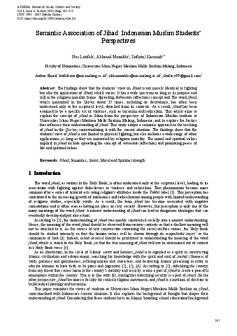 Semantic Association of Jihad: Indonesian Muslim Students’