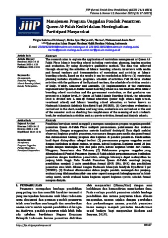 Manajemen Program Unggulan Pondok Pesantren Queen Al-Falah Kediri dalam Meningkatkan Partisipasi Masyarakat.