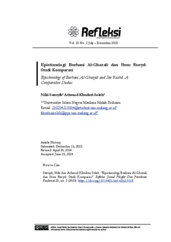 | Keywords: | Burhani; al-Ghazali; Ibn Rusyd; Islamic Philosophy |