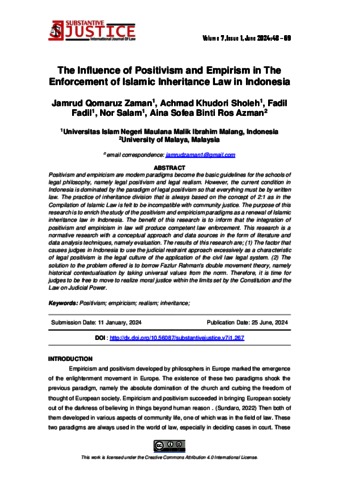 The influence of positivism and empirism in the enforcement of Islamic inheritance law in Indonesia.