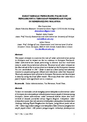 Zakat sebagai pengurang pajak dan pengaruhnya terhadap penerimaan pajak di Semenanjung Malaysia.