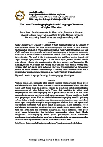The use of translanguaging in arabic language classroom
