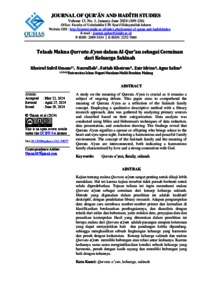 | Subjects: | 22 PHILOSOPHY AND RELIGIOUS STUDIES > 2204 Religion and Religious Studies > 220403 Islamic Studies > 22040301 Al-Quran, Tafsir and related science 22 PHILOSOPHY AND RELIGIOUS STUDIES > 2204 Religion and Religious Studies > 220403 Islamic Studies > 22040302 Al-Hadits, and related science 22 PHILOSOPHY AND RELIGIOUS STUDIES > 2204 Religion and Religious Studies |