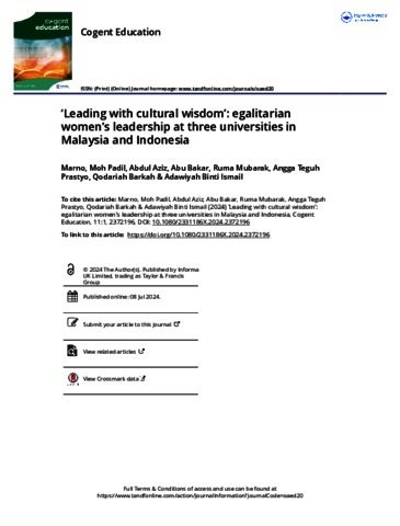 'Leading with cultural wisdom': Egalitarian woman's leadership at three universities in Malaysia and Indonesia.