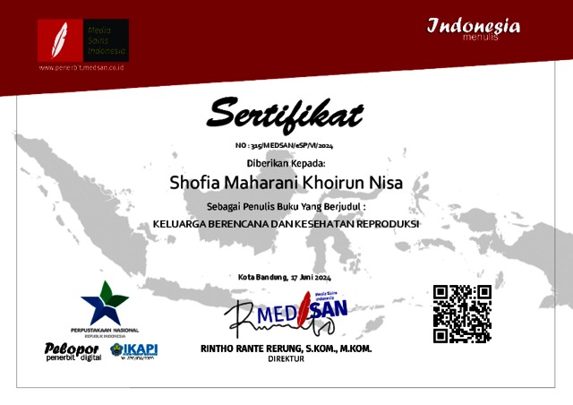 Nisa, Shofia Maharani Khoirun (2024) Sertifikat penulis. Media Sains Indonesia.
