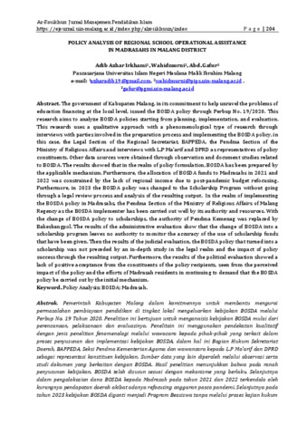 Policy analysis of regional school operational assistance in madrasahs in Malang district.