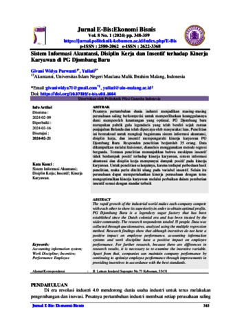 | Keywords: | Sistem Informasi Akuntansi; Disiplin Kerja; Insentif; Kinerja Karyawan |