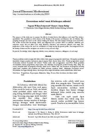 | Keywords: | knowledge; belief; religiosity; attitude; norm; intention; awareness; willingness of cash waqf |