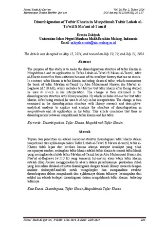 Disambiguation of Tafsir Khazin in Muqodimah and its application in Tafsir Lubab al-Ta'wil fi Ma'ani al-Tanzil.