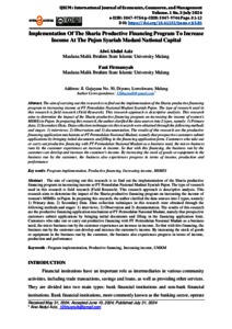 Aziz, Alwi Abdul and Firmansyah, Fani (2024) Implementation of the Sharia Productive Financing Program to increase income at the Pujon Syariah Madani National Capital. IJECM : International Journal of Economics, Commerce, and Management, 1 (3). pp. 1-12. ISSN e-ISSN: 3047-9754