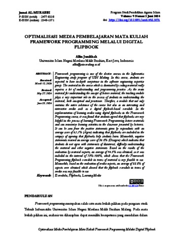 Optimalisasi media pembelajaran mata kuliah Framework Programming melalui digital Flipbook.