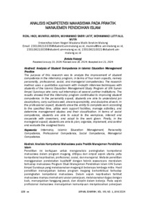 Hadi, Rizal, Abidin, Munirul, Latif, Muhammad Sabri and Mu'in, Mohammad Lutfi Alil (2024) Analysis of student competence in Islamic education management practice. Idaarah: Jurnal Manajemen Pendidikan, 8 (1). pp. 108-119. ISSN 2621-9476