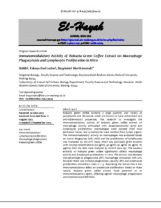 | Keywords: | Immunomodulator; Lymphocyte proliferation; Macrophage phagocytosis; Robusta green coffee |