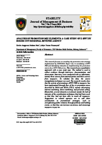 Analysis of promotion mix elements: A case study of e-SPPT by Bogor City Regional Revenue Agency.