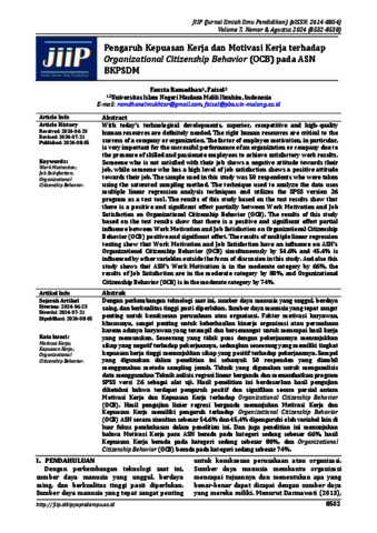 Pengaruh kepuasan kerja dan motivasi kerja terhadap Organizational Citizenship Behavior (OCB) pada ASN BKPSDM.