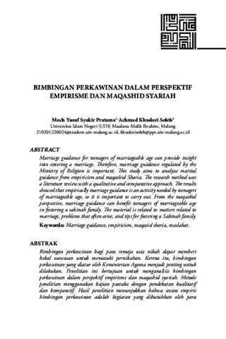Bimbingan perkawinan dalam perspektif empirisme dan Maqashid Syariah.