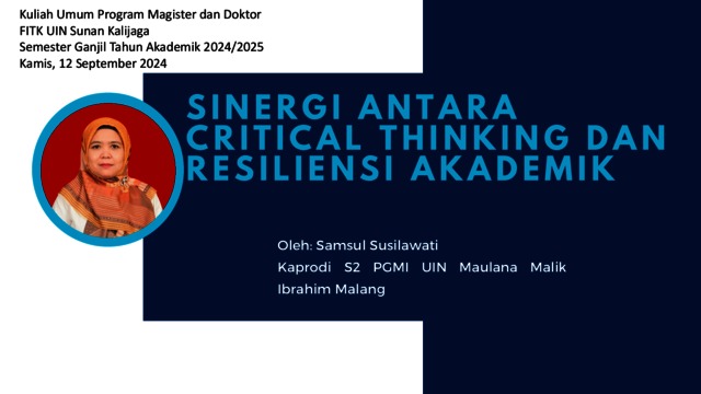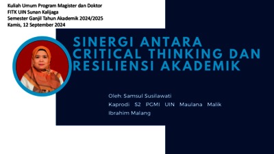 Susilawati, Samsul (2024) Sinergi antara critical thinking dan resiliensi akademik. Presented at Kuliah Umum Program Magister dan Doktor FITK UIN Sunan Kalijaga Semester Ganjil Tahun Akademik 2024/2025 Kamis, 12 September 2024, UIN Sunan Kalijaga. (Unpublished)