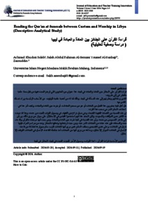 Reading the Qur’an at funerals between custom and worship in Libya. This is one of the titles that has not been scientifically researched before, given the people's circumstances, their customs, and their view of this issue in Libya, because of its scientific importance in identifying the main reasons behind people’s adherence.