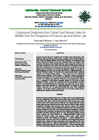 Commission deductions from online food delivery sales for msmes from the perspective of positive law and Islamic Law.