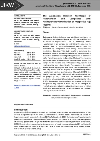 The Association Between Knowledge of Hypertension and Compliance with Antihypertensive Medication on Prospective Hajj Pilgrims, 13 (2).
