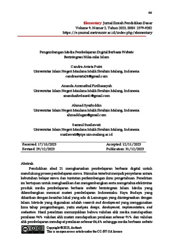 Pengembangan media pembelajaran digital berbasis website berintegrasi nilai-nilai Islam.