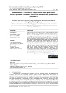 | Keywords: | Fiber optic-based sensors; Finite-difference time-domain; Geometrical parameters; Optimization; Plasmonic materials ; Surface plasmon resonance |