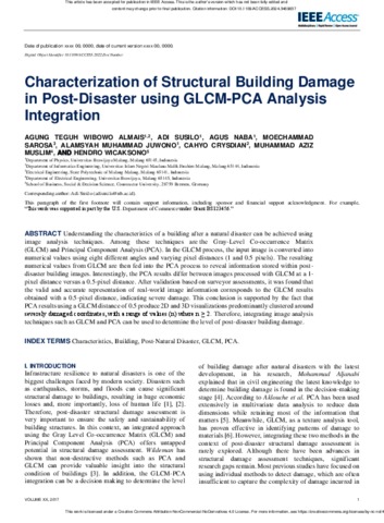 | Keywords: | Characteristics; Building; Post-Natural Disaster; GLCM; PCA |