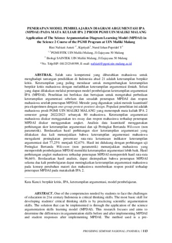 Astuti, Rini Nafsiati, Kiptiyah, Kiptiyah and Pepridel, Nurul Izhan (2024) Penerapan Model Pembelajaran Diagram Argumentasi IPA (MPDAI) pada mata kuliah IPA 2 Prodi PGMI UIN Maliki Malang. Presented at Seminar nasional peningkatan indikator kinerja utama perguruan tinggi (pandika), 30 september 2023, denpasar bali.