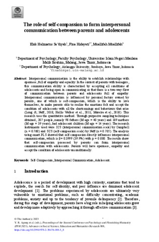 The role of self-compassion to form interpersonal communication between parents and adolescents.