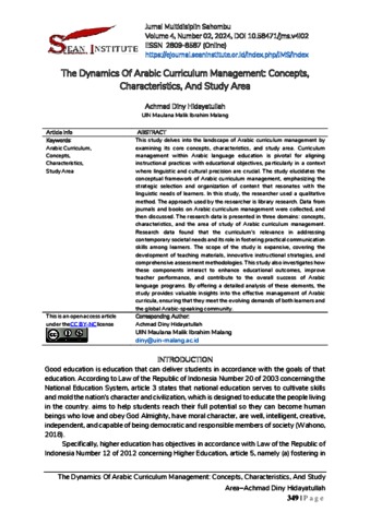 The dynamics of Arabic curriculum management: Concepts, characteristics, and study area.