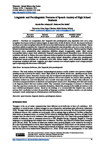 Linguistic and paralinguistic features of speech anxiety of High School Students.