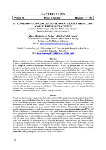 Anshory, Abdul Muntaqim Al and Umam, Khoirul Safril (2024) Citra perempuan jawa dalam novel “ Wigati” karya Khilma Anis: Analisis kritik sastra feminis. Sawerigading, 30 (1). ISSN 2527-8762