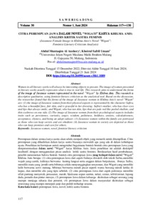 Perempuan dalam semua karya sastra akan selalu menjadi objek yang menarik untuk ditampilkan. Citra perempuan yang dihadirkandalam karya sastra biasanya mewakili apa yang ada di dalam kehidupan nyata.Penelitian ini bertujuanuntuk mengetahui bagaimana bentuk-bentuk citra perempuan Jawayang direpresentasikandalam novel “Wigati” karyaKhilma Anis. Jenis penelitian ini adalah deskriptif kualitatif, dengan menggunakan pisau analisis kritik sastra feminis. Berdasarkan hasil pembahasan, peneliti menemukan bahwa bentuk-bentuk citra perempuan Jawayang terdapat dalam novel “Wigati” Khilma Anis berupa:(1) citra perempuan Jawadari aspek fisiknya diwakili oleh tokoh Safira,memiliki wajah yang cantik, kulitnya berwarna kuning langsat serta anggun dalam berpakaian, ibunya Safira, memiliki mata yang jernih serta bibirnya selalu menyunggingkan senyuman,dan Wigatiyangmemiliki kulit berwarna sawo matang, bibirnya berwarna merah pucat seperti warna bawang merah ketika di kupas, dan memiliki alis yang tipis sebelah.(2) citra perempuan Jawadari aspek psikisnya memiliki sifati pantang menyerah, penasaran, marah, bjiaksana sopan santun, nekat, cemas, teliti/cermat, lapang dada,pemalu dan pintar merayu, (3) perempuan Jawadalam keluarga dicitrakan sebagai seorang yang mampu menjaga rahasia dan penurut, (4) perempuan Jawadalam masyarakat dicitrakan sebagai seseorang yang mampu menepati janji dan peduli terhadap sesama.