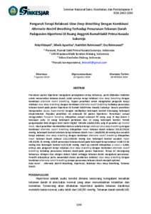 Pengaruh terapi relaksasi slow deep breathing dengan kombinasi alternate nostril breathing terhadap penurunan tekanan darah padapasien hipertensi di Ruang Anggrek Rumahsakit Prima Husada Sukorejo.