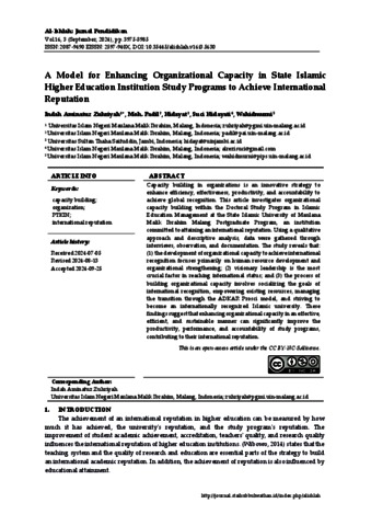 A model for enhancing organizational capacity in State Islamic Higher Education Institution Study Programs to achieve International reputation.