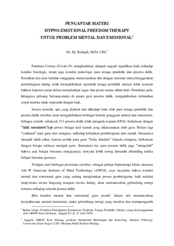 | Keywords: | Hypno-emotional freedom therapy; problem mental; emosional |