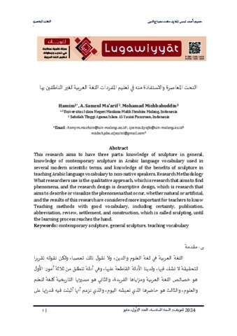 Alnaht almueasirat walaistifadat minh fi taelim almufradat allughat alearabiat lighayr alnaatiqin biha (النحت المعاصرة والاستفادة منه في تعليم المفردات اللغة العربية لغير الناطقين بها).
