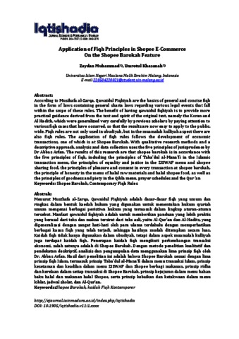 Muhammad, Zaydan and Khasanah, Umrotul (2024) Application of Fiqh Principles in Shopee E-Commerce On the Shopee Barokah Feature. Iqtishadia: Jurnal Ekonomi dan Perbankan Syariah, 11 (1). pp. 37-44. ISSN 2442-3076