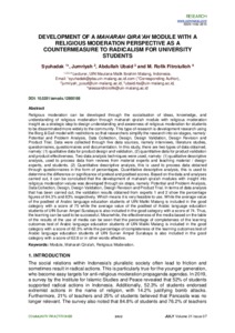 Development of a maharah qira'ah module with a religious moderation perspective as a countermeasure to radicalism for university students.