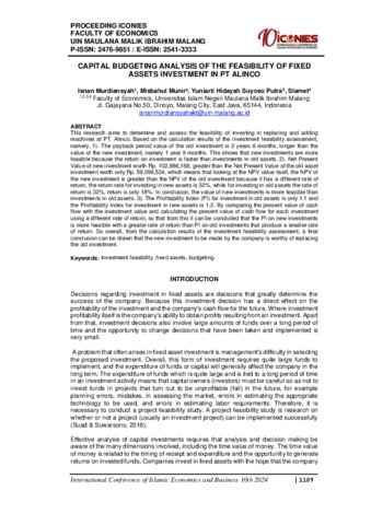 | Keywords: | Investment feasibility; fixed assets; budgeting |