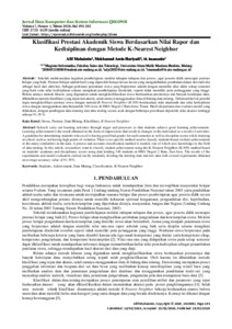 Klasifikasi Prestasi Akademik Siswa Berdasarkan Nilai Rapor dan Kedisiplinandengan Metode K-Nearest Neighbor.