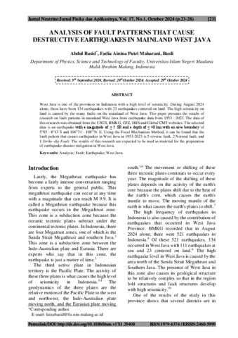 Analysis of fault patterns that cause destructive earthquakes in mainland West Java.