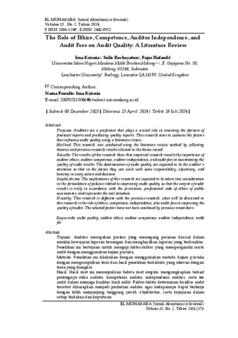 this research is the role of ethics, competence, independence, also audit fees in improving the