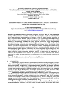 Rohmana, Wahyu Indah Mala (2023) EXPLORING THE USE OF LITERARY TEXTS FOR ENGLISH LANGUAGE LEARNING IN INDONESIAN SECONDARY EDUCATION. Presented at International Conference on Islamic Education (ICIED) 2023, 10 Nov 2023, Malang.