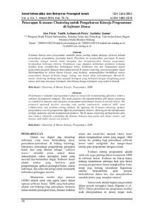 Produktivitas SeEvaluasi kinerja para programmer memiliki peran penting dalam menjaga efisiensi sebuah perusahaan pengembang perangkat lunak. Penelitian ini mengusulkan penerapan K-means clustering sebagai metode untuk mengukur dan mengkategorikan kinerja programmer berdasarkan beberapa kriteria. Pendekatan yang diajukan melibatkan penilaian terhadap kualitas kode, produktivitas, kemampuan teknis, kolaborasi tim, dan kemampuan dalam pemecahan masalah. Dengan menerapkan metode K-means clustering, para programmer dapat dikelompokkan ke dalam klaster kinerja yang berbeda, memungkinkan identifikasi antara programmer dengan performa tinggi, sedang, dan dalam tahap perkembangan. Metode Kmeans clustering membagi data menjadi kelompok yang berkaitan dengan menghitung jarak antara titik data dan pusat kelompok, dan diulang hingga kelompok yang stabil terbentuk.