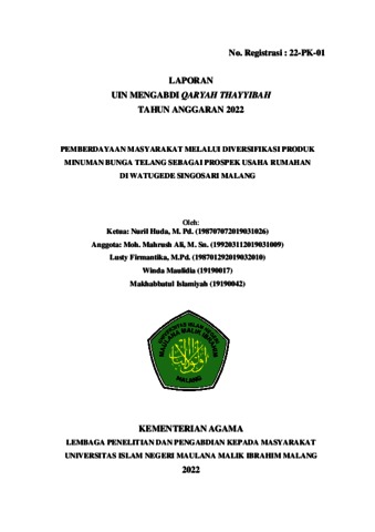 | Keywords: | Pemberdayaan Masyarakat; Diversifikasi Produk; Bunga Telang |