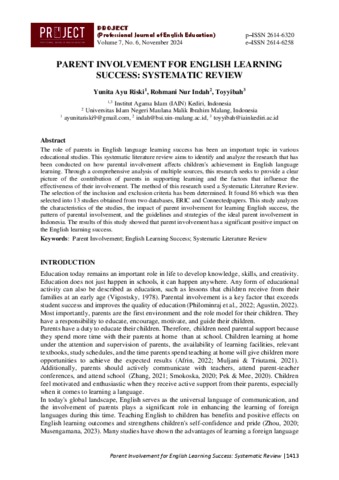 | Keywords: | Parent Involvement; English Learning Success; Systematic Literature Review |
