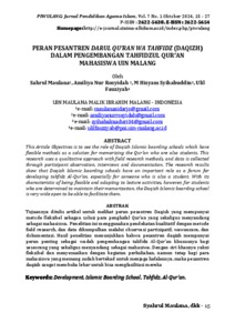 Peran Pesantren Darul Qu’ran Wa Tahfidz (Daqizh) Dalam Pengembangan Tahfidzul Qur’an Mahasiswa UIN Malang, 7 (1).